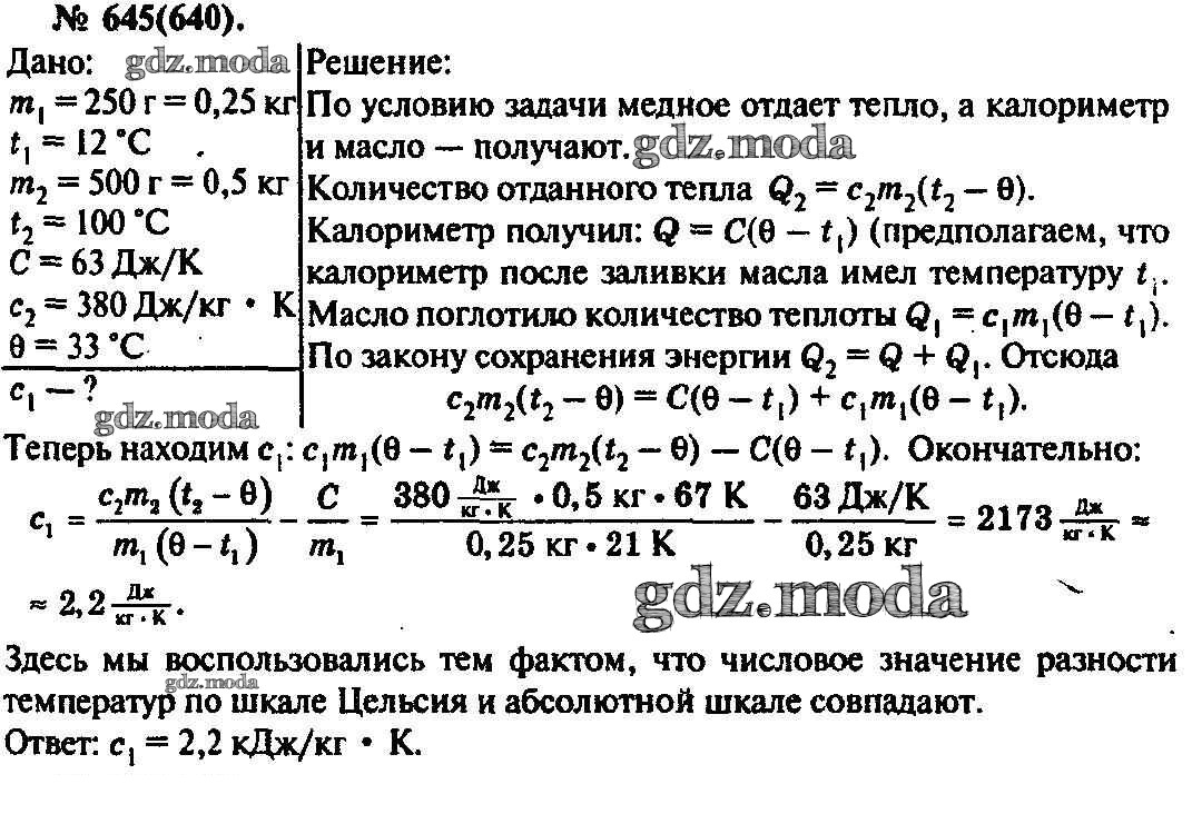 ОТВЕТ на задание № 645 Задачник по Физике 10-11 класс Рымкевич УМК