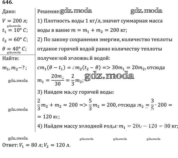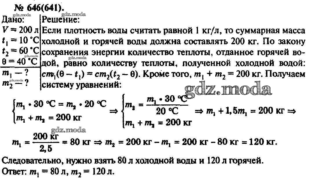 ОТВЕТ на задание № 646 Задачник по Физике 10-11 класс Рымкевич УМК
