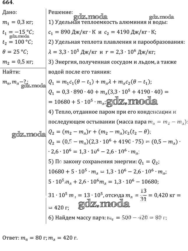 ОТВЕТ на задание № 664 Задачник по Физике 10-11 класс Рымкевич УМК