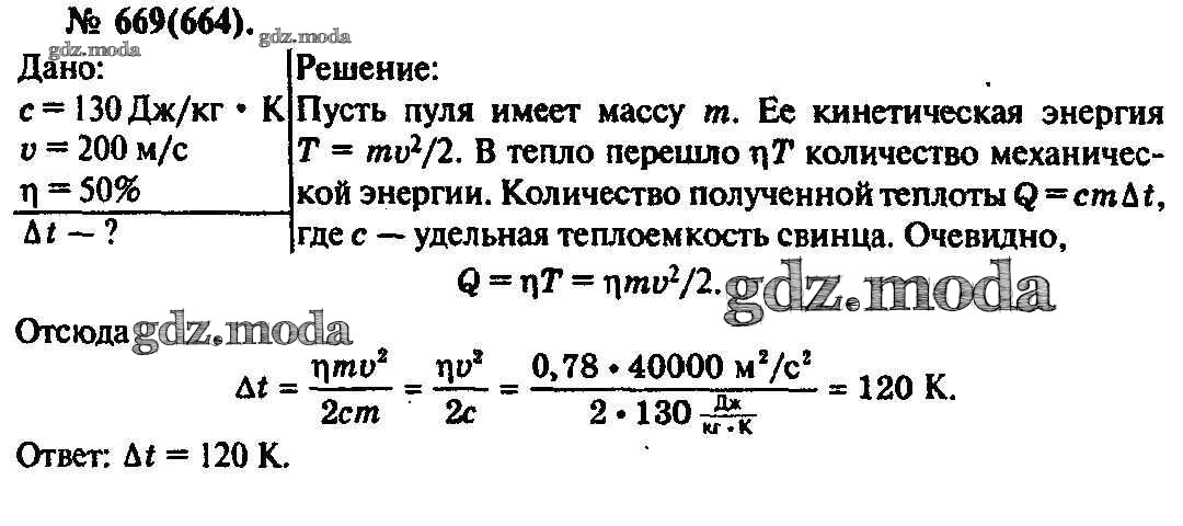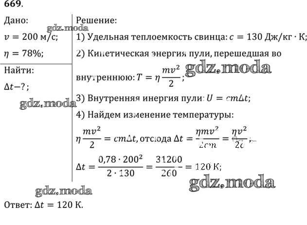 ОТВЕТ на задание № 669 Задачник по Физике 10-11 класс Рымкевич УМК