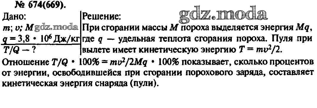 ОТВЕТ на задание № 674 Задачник по Физике 10-11 класс Рымкевич УМК
