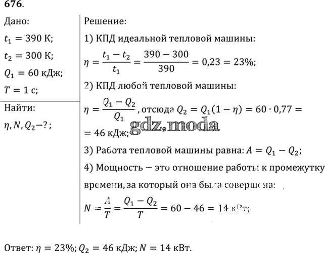 ОТВЕТ на задание № 676 Задачник по Физике 10-11 класс Рымкевич УМК