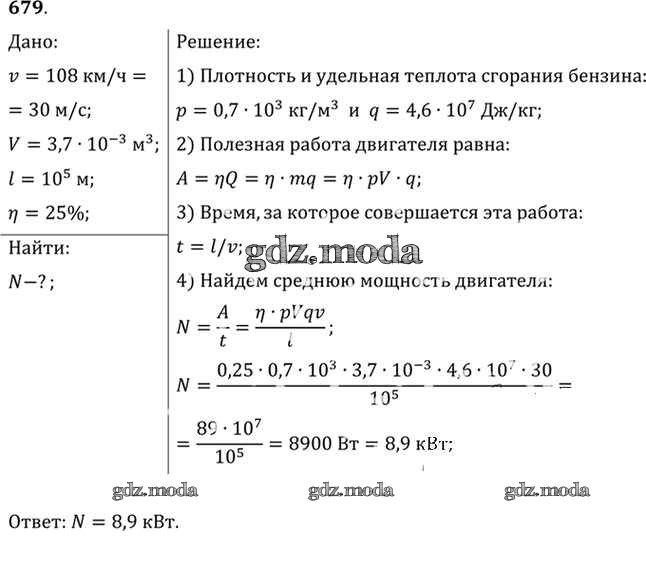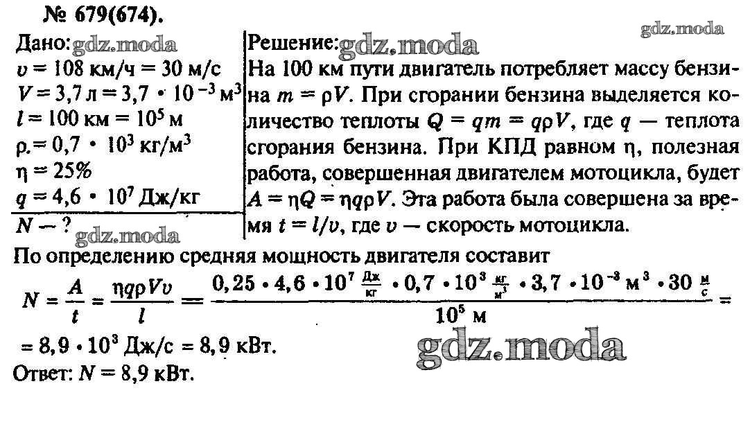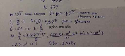 ОТВЕТ на задание № 679 Задачник по Физике 10-11 класс Рымкевич УМК
