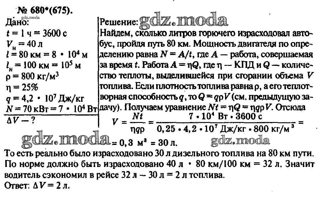 ОТВЕТ на задание № 680 Задачник по Физике 10-11 класс Рымкевич УМК