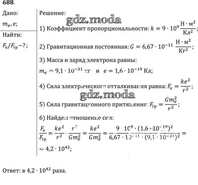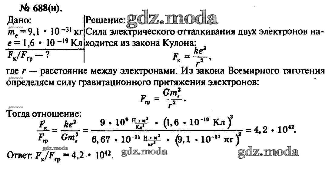 ОТВЕТ на задание № 688 Задачник по Физике 10-11 класс Рымкевич УМК