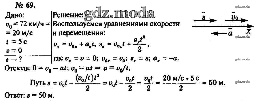 ОТВЕТ на задание № 69 Задачник по Физике 10-11 класс Рымкевич УМК