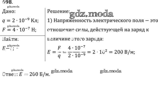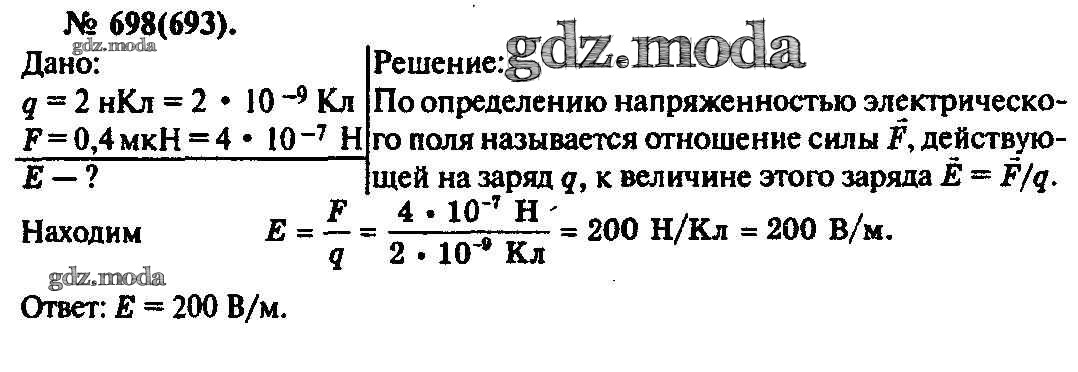 ОТВЕТ на задание № 698 Задачник по Физике 10-11 класс Рымкевич УМК