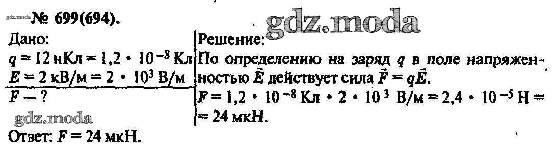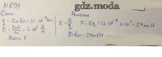 ОТВЕТ на задание № 699 Задачник по Физике 10-11 класс Рымкевич УМК