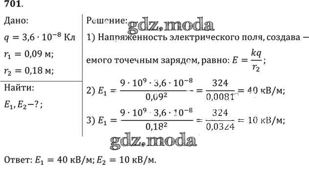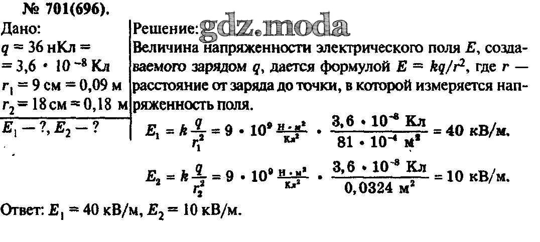 ОТВЕТ на задание № 701 Задачник по Физике 10-11 класс Рымкевич УМК