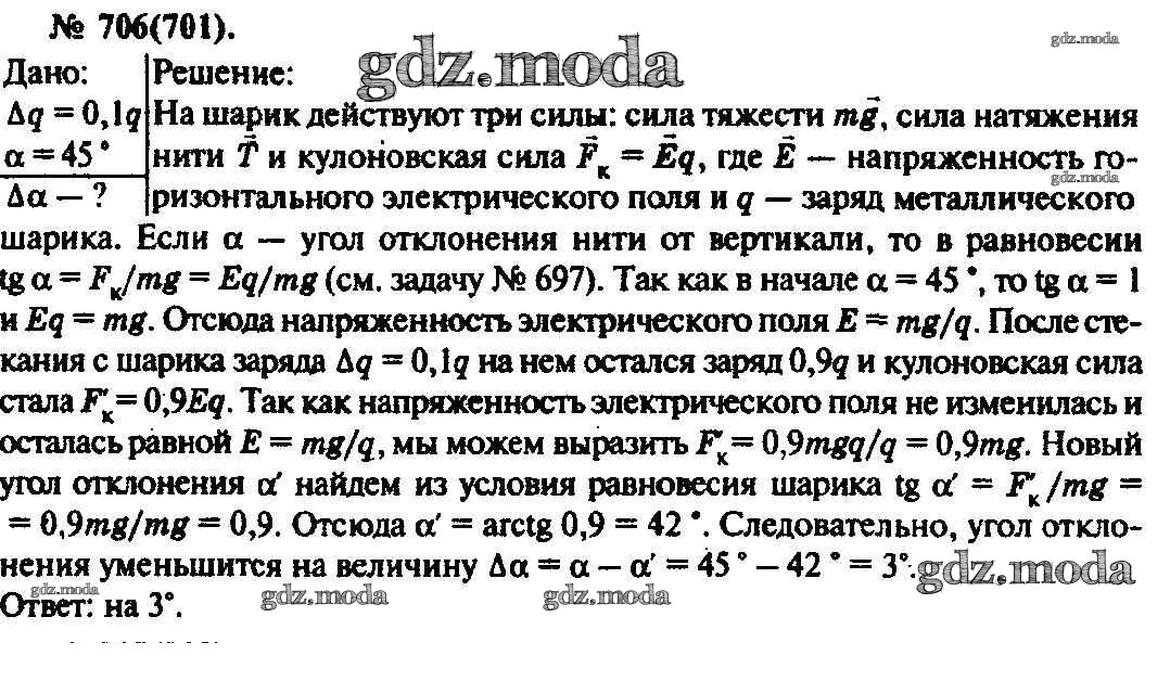 ОТВЕТ на задание № 706 Задачник по Физике 10-11 класс Рымкевич УМК