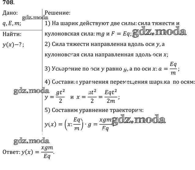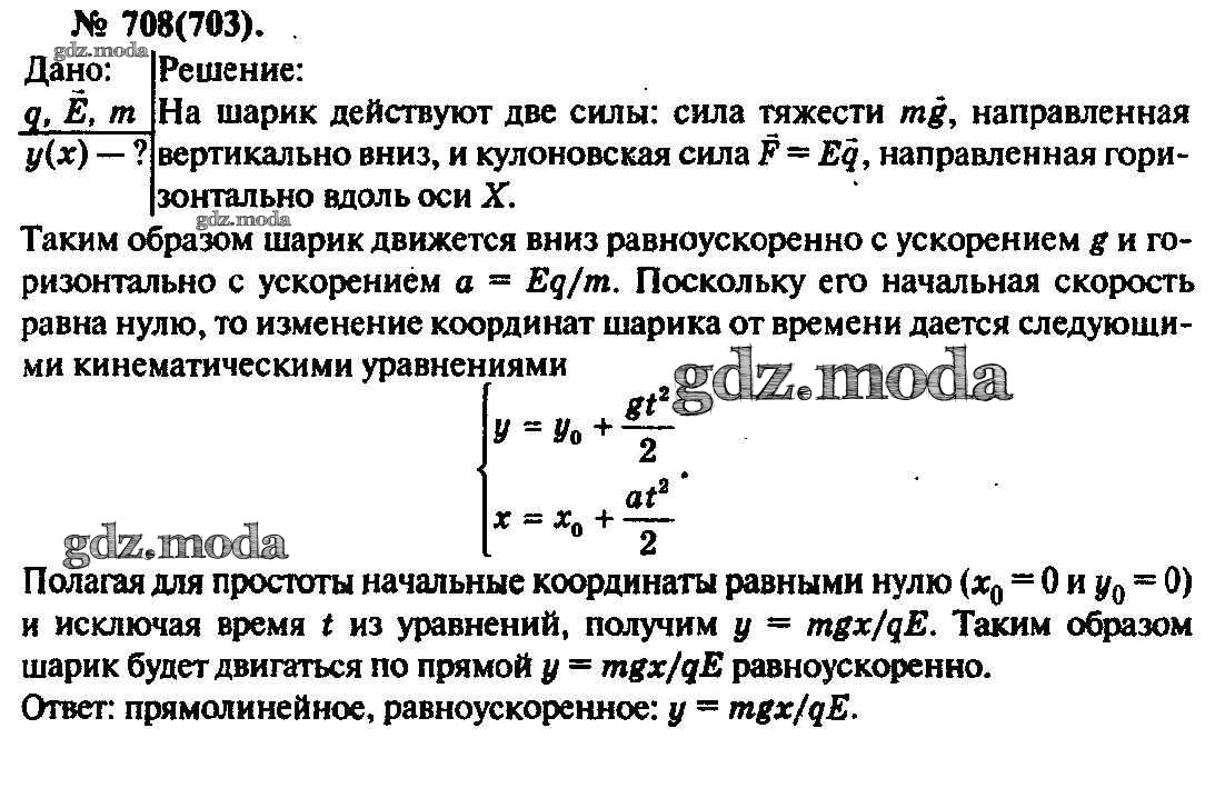 ОТВЕТ на задание № 708 Задачник по Физике 10-11 класс Рымкевич УМК