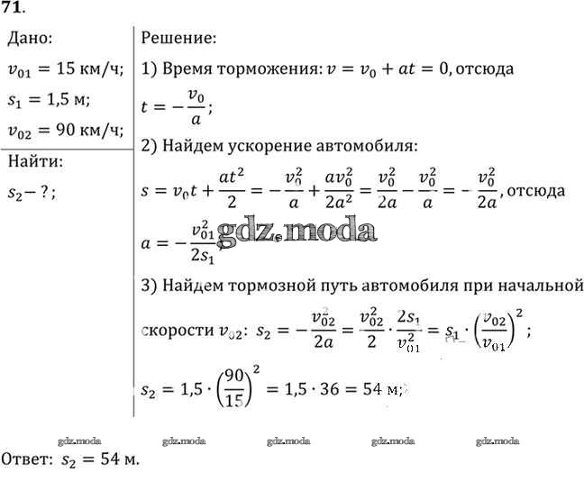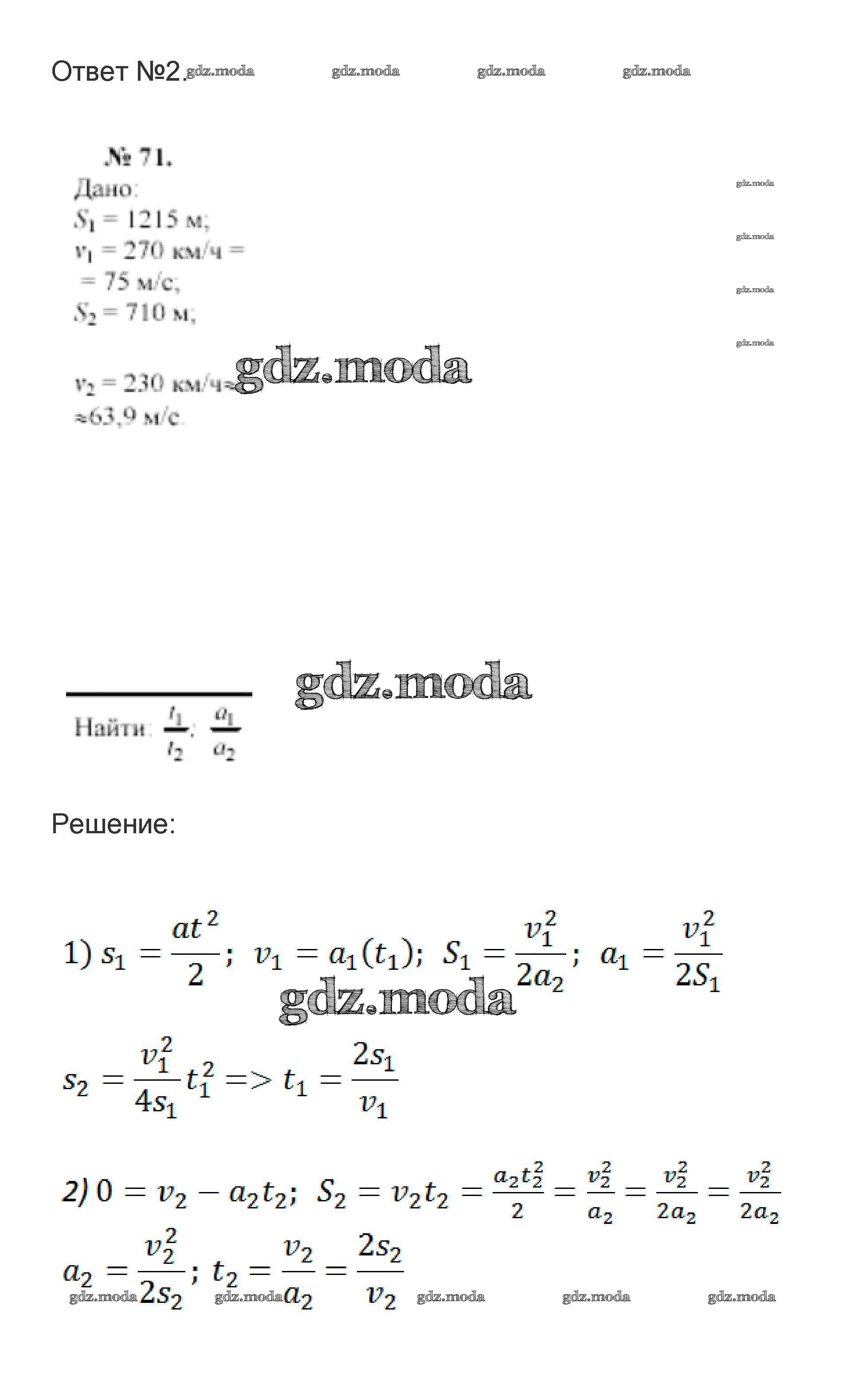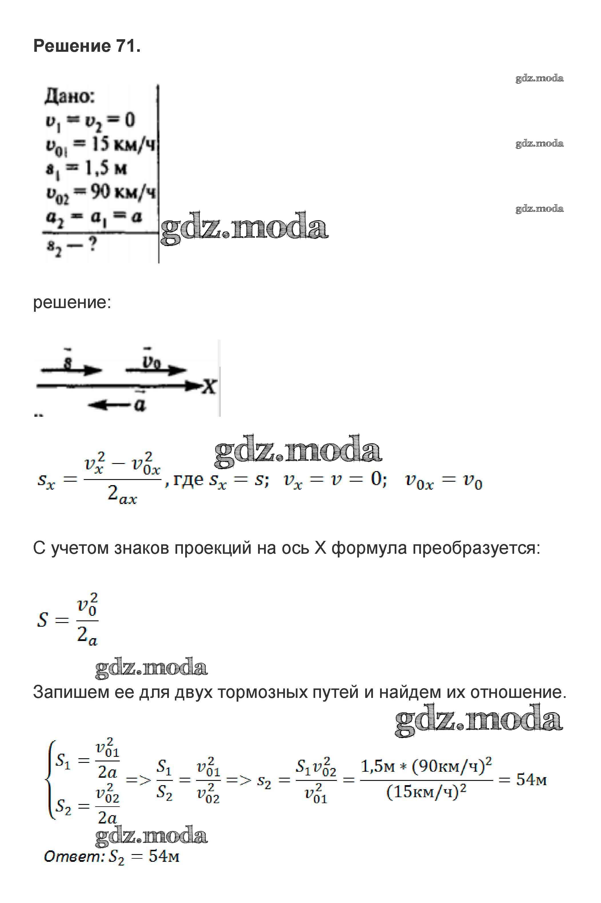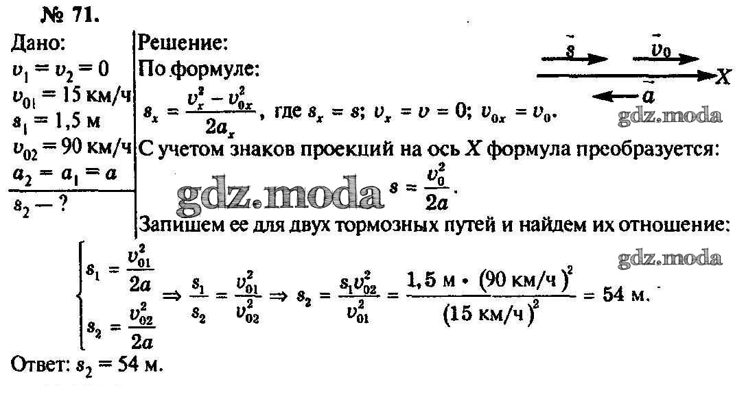 ОТВЕТ на задание № 71 Задачник по Физике 10-11 класс Рымкевич УМК