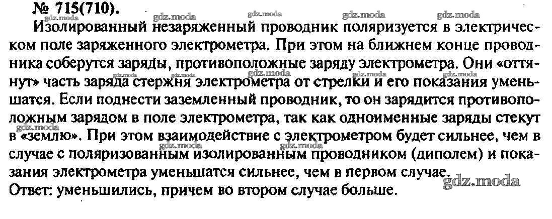 ОТВЕТ на задание № 715 Задачник по Физике 10-11 класс Рымкевич УМК