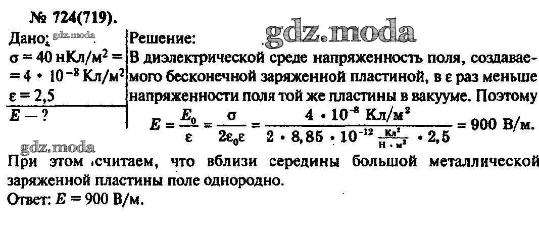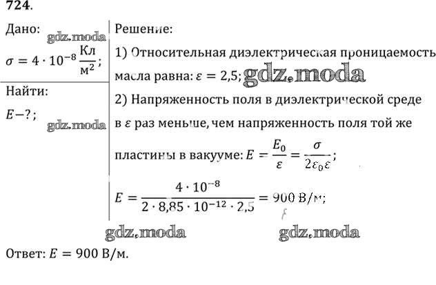 ОТВЕТ на задание № 724 Задачник по Физике 10-11 класс Рымкевич УМК
