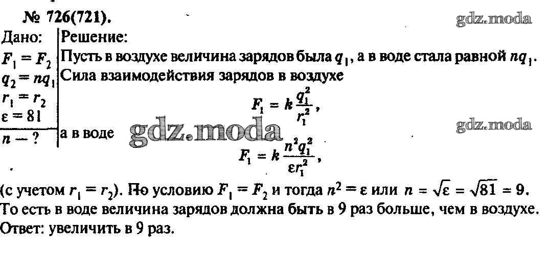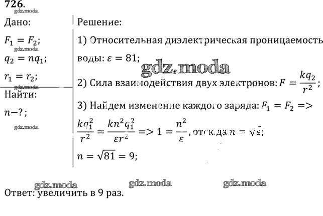 ОТВЕТ на задание № 726 Задачник по Физике 10-11 класс Рымкевич УМК