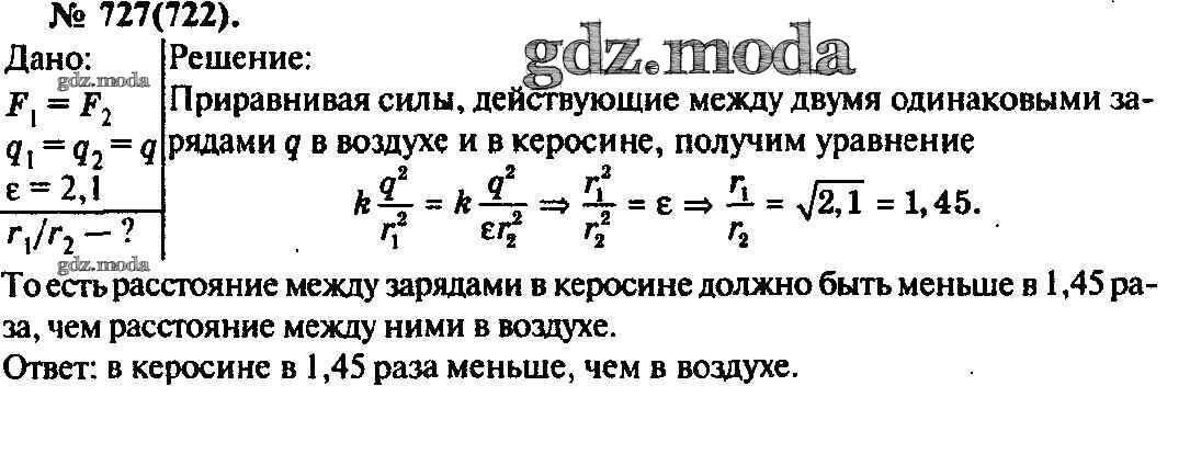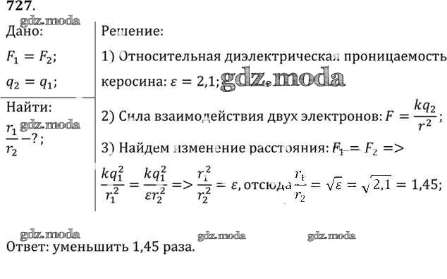 ОТВЕТ на задание № 727 Задачник по Физике 10-11 класс Рымкевич УМК