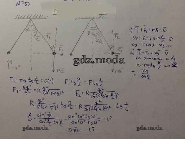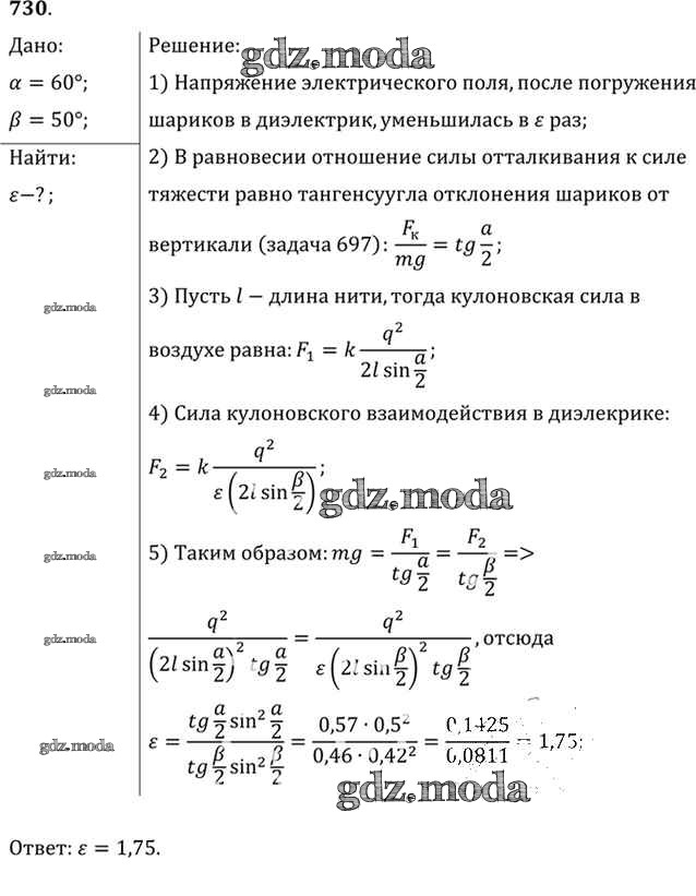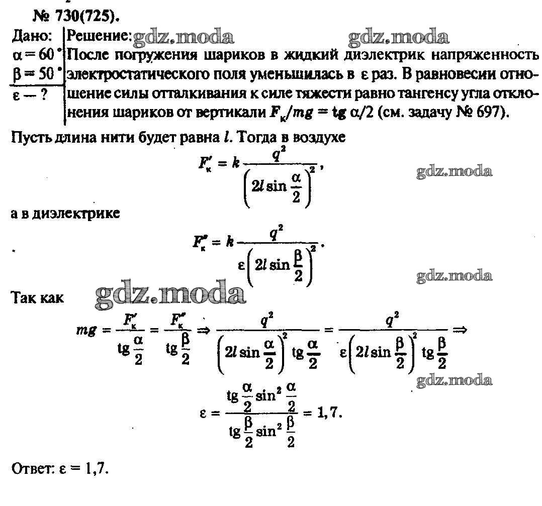 ОТВЕТ на задание № 730 Задачник по Физике 10-11 класс Рымкевич УМК