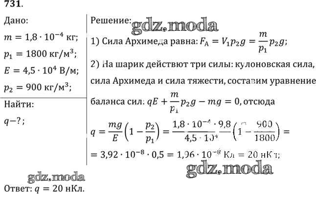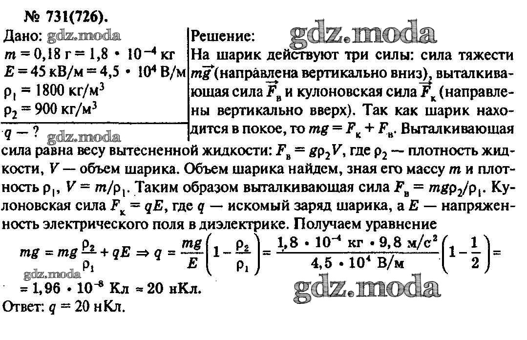 ОТВЕТ на задание № 731 Задачник по Физике 10-11 класс Рымкевич УМК