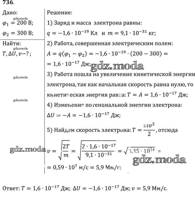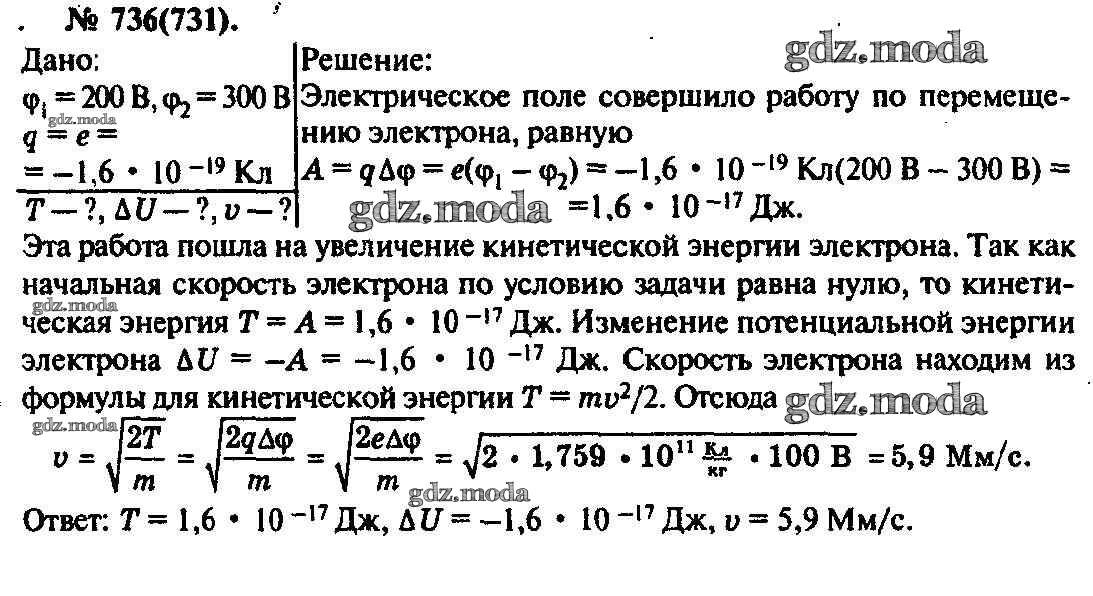 ОТВЕТ на задание № 736 Задачник по Физике 10-11 класс Рымкевич УМК
