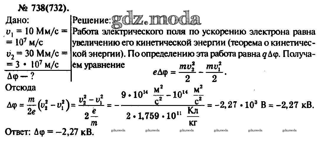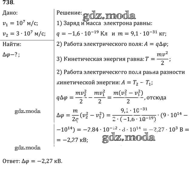 ОТВЕТ на задание № 738 Задачник по Физике 10-11 класс Рымкевич УМК