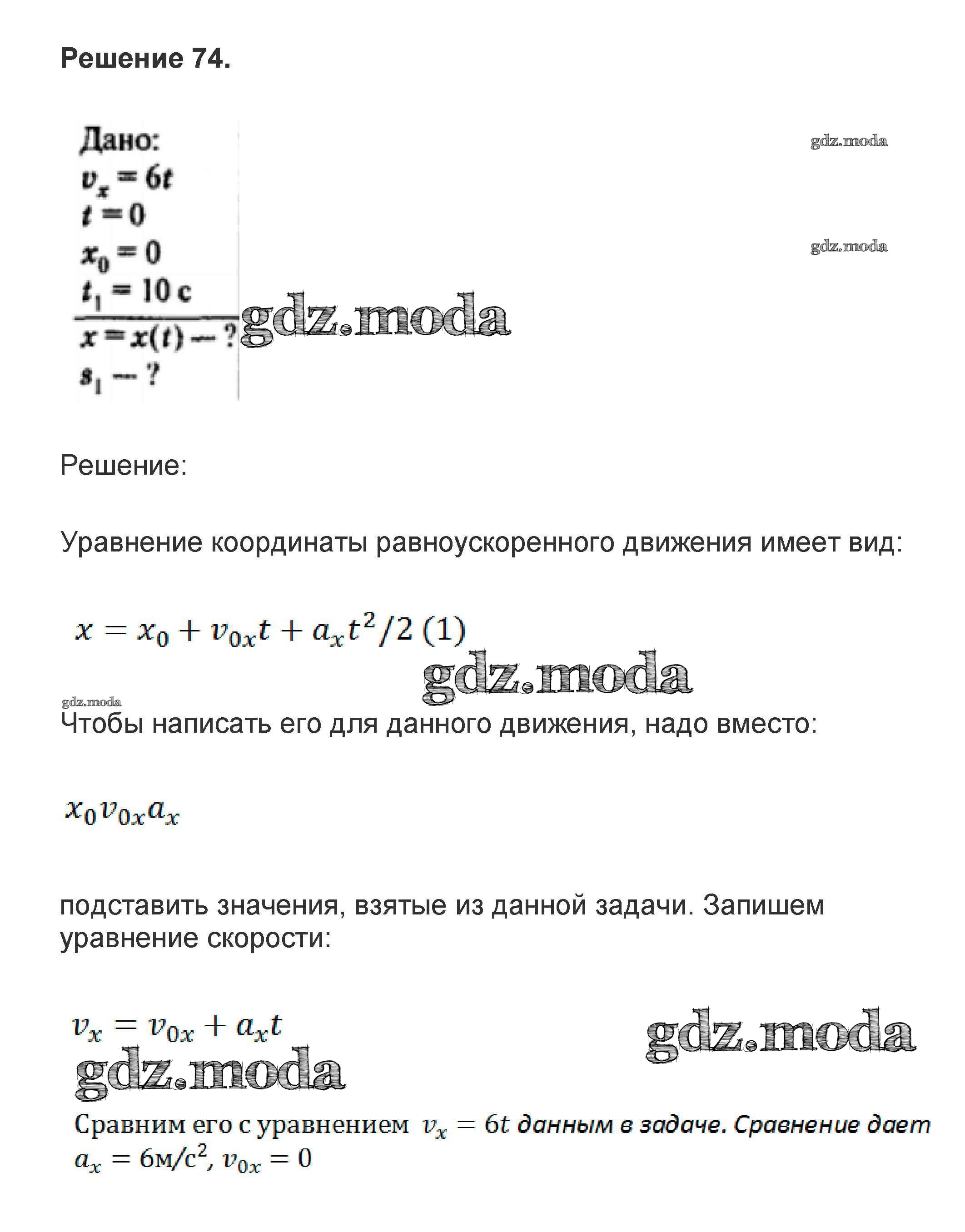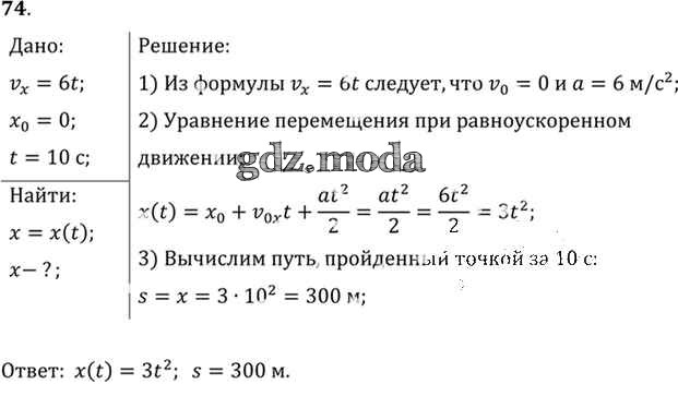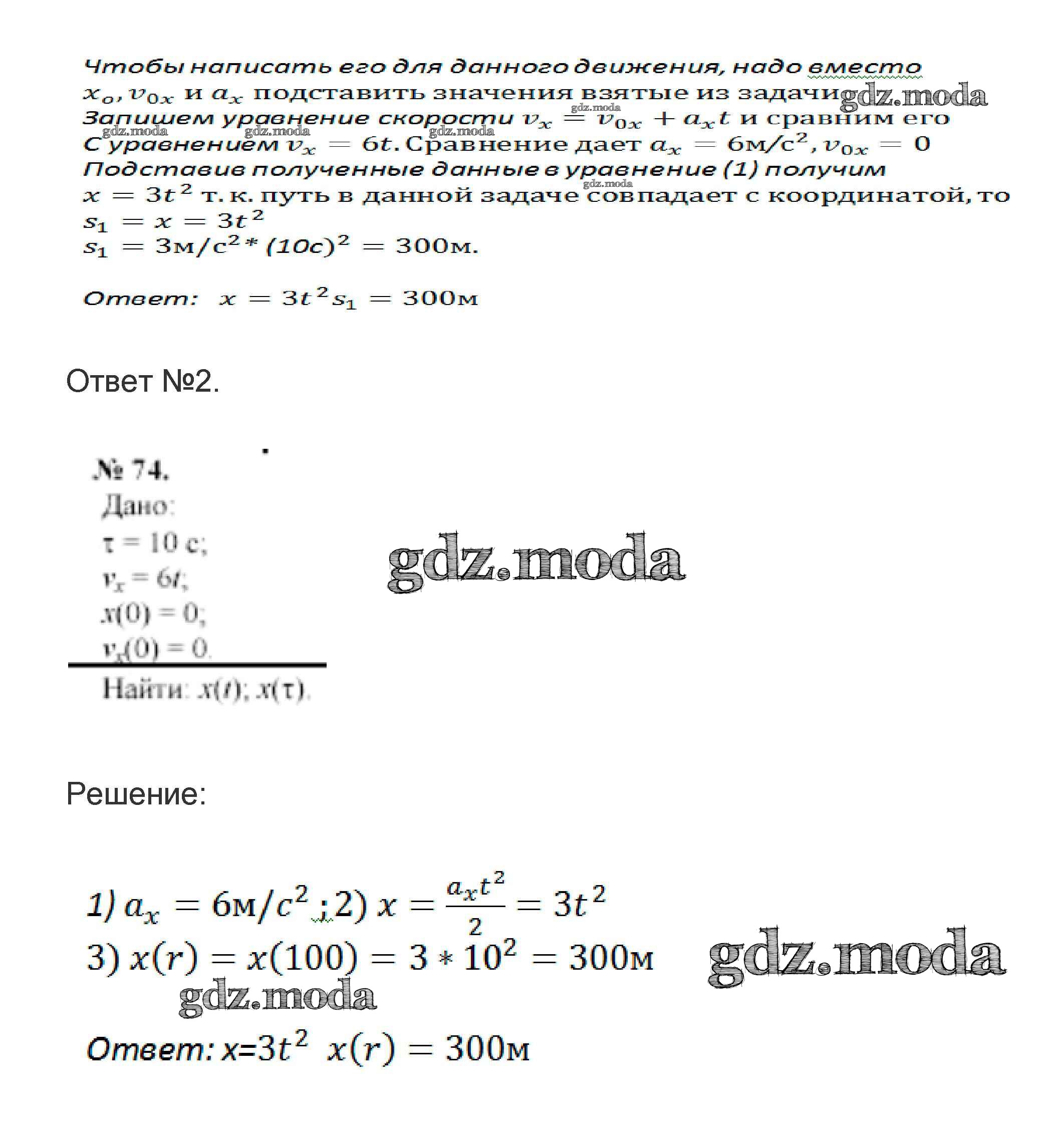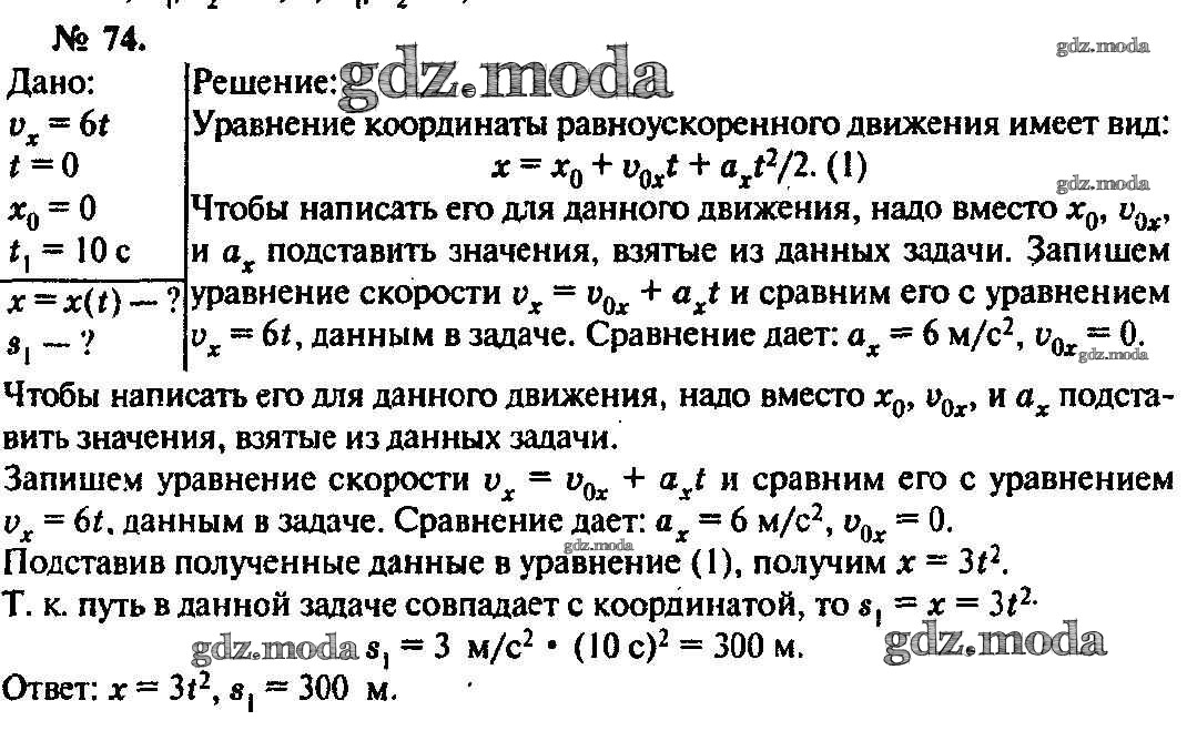 ОТВЕТ на задание № 74 Задачник по Физике 10-11 класс Рымкевич УМК