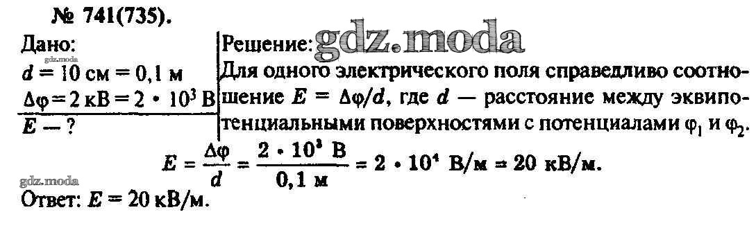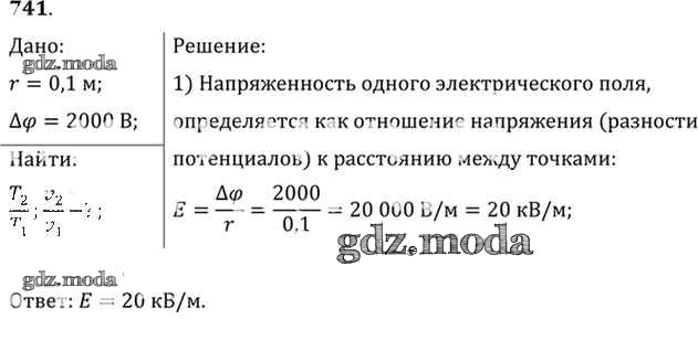 ОТВЕТ на задание № 741 Задачник по Физике 10-11 класс Рымкевич УМК