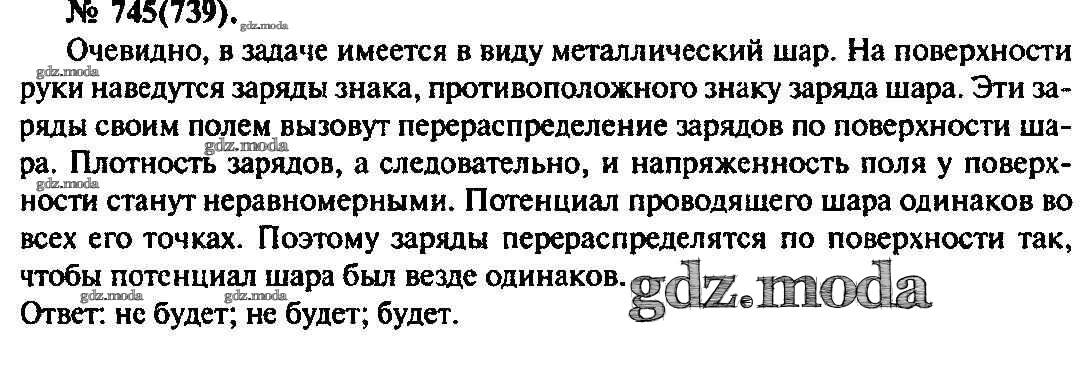 ОТВЕТ на задание № 745 Задачник по Физике 10-11 класс Рымкевич УМК