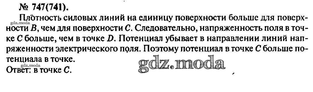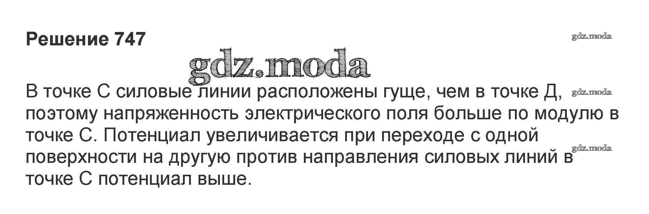 ОТВЕТ на задание № 747 Задачник по Физике 10-11 класс Рымкевич УМК