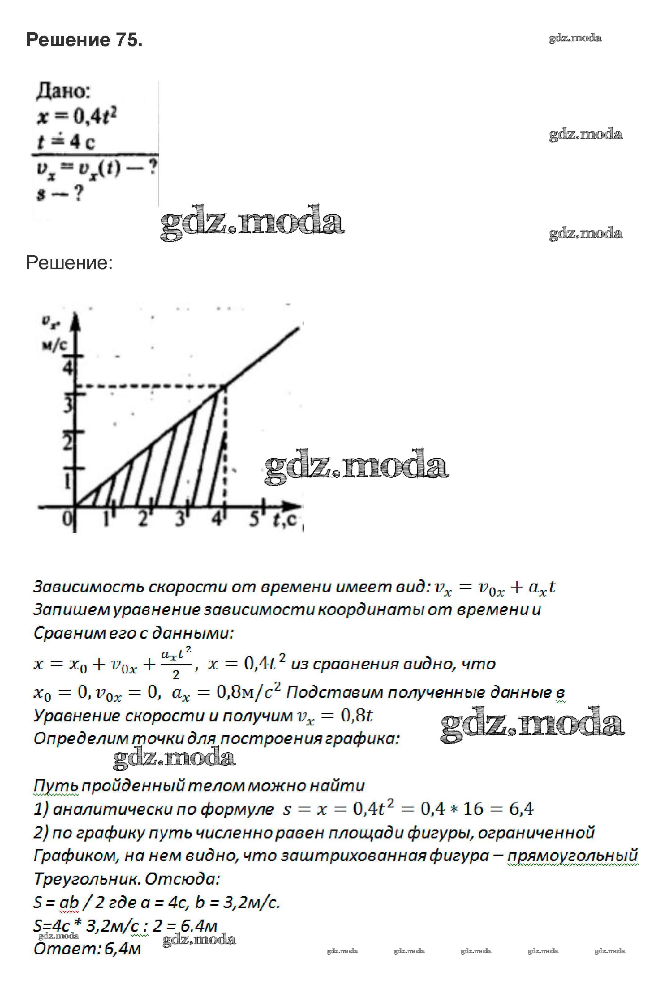 ОТВЕТ на задание № 75 Задачник по Физике 10-11 класс Рымкевич УМК