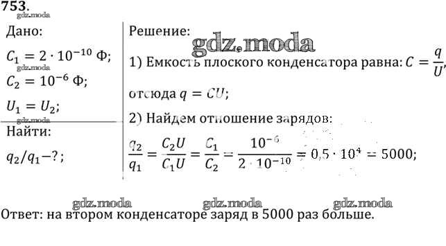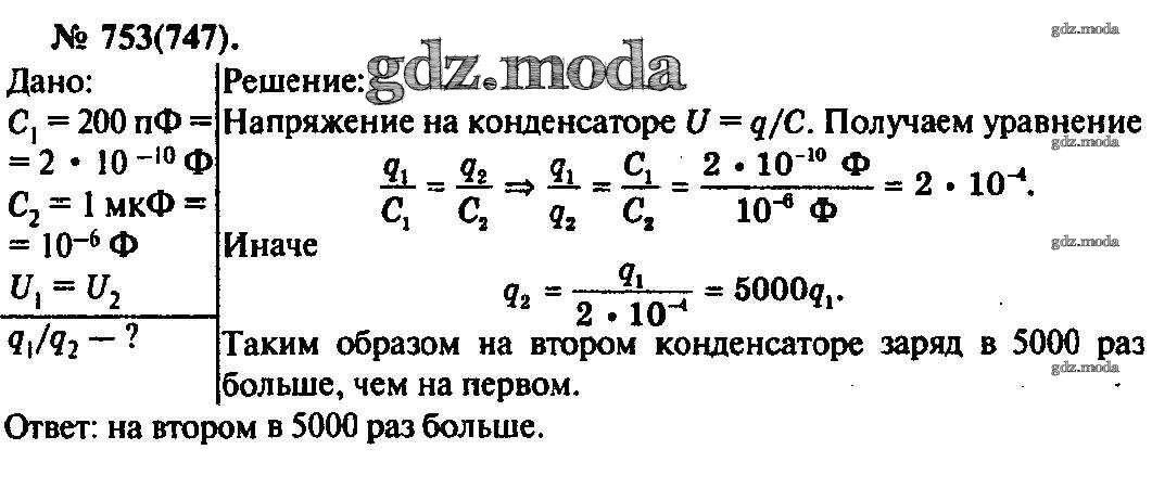 ОТВЕТ на задание № 753 Задачник по Физике 10-11 класс Рымкевич УМК