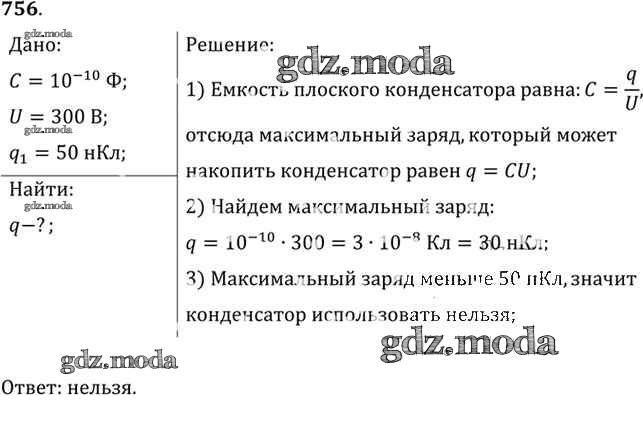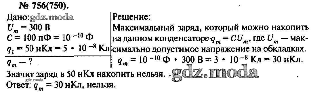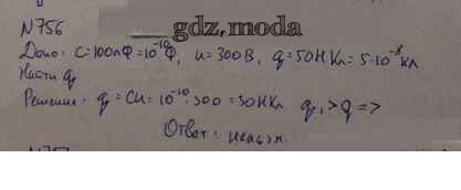 ОТВЕТ на задание № 756 Задачник по Физике 10-11 класс Рымкевич УМК