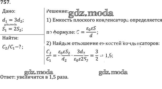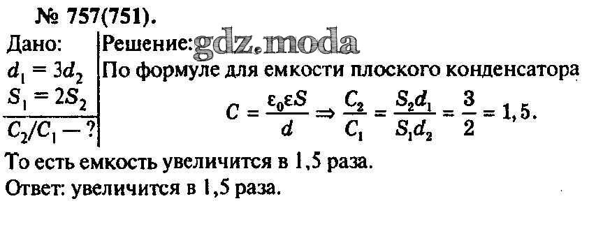 ОТВЕТ на задание № 757 Задачник по Физике 10-11 класс Рымкевич УМК