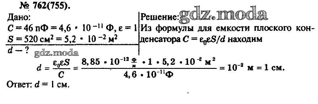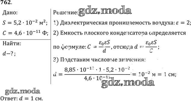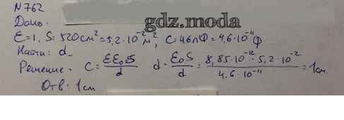 ОТВЕТ на задание № 762 Задачник по Физике 10-11 класс Рымкевич УМК