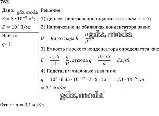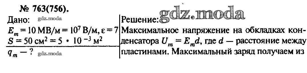 ОТВЕТ на задание № 763 Задачник по Физике 10-11 класс Рымкевич УМК