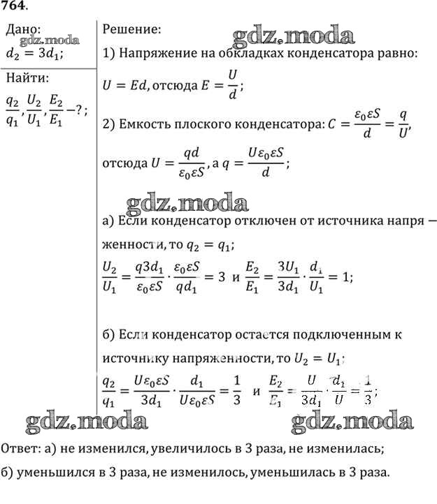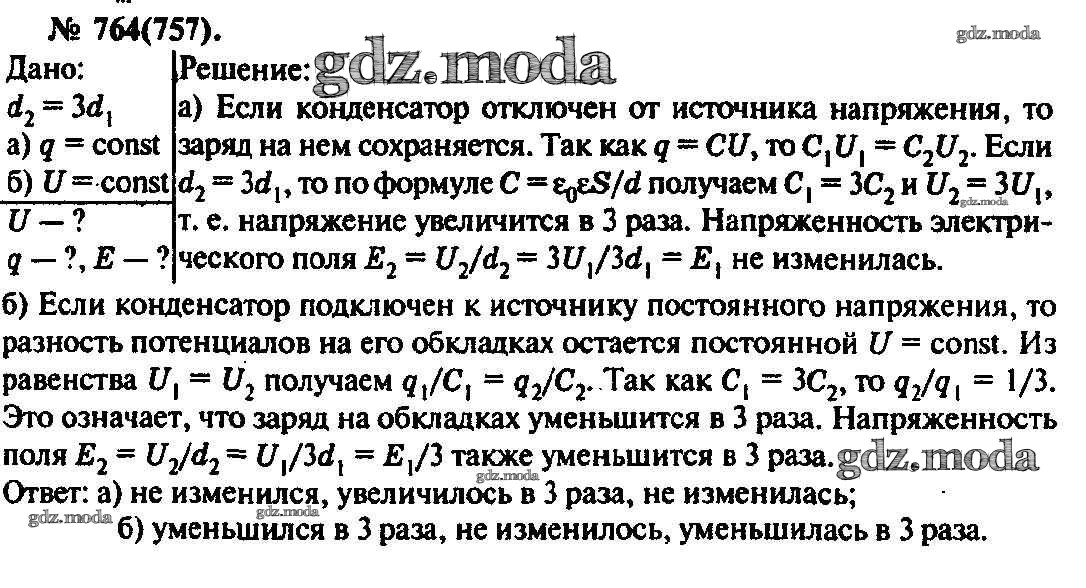 ОТВЕТ на задание № 764 Задачник по Физике 10-11 класс Рымкевич УМК