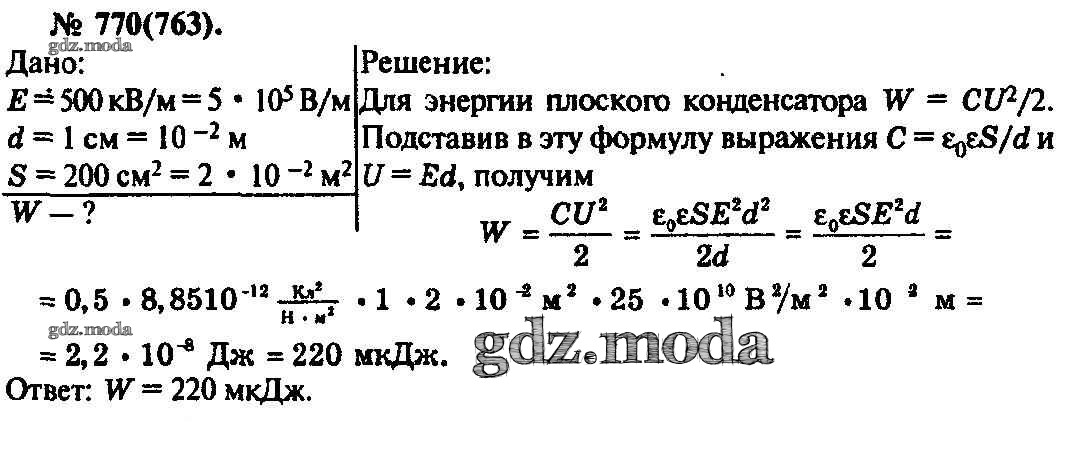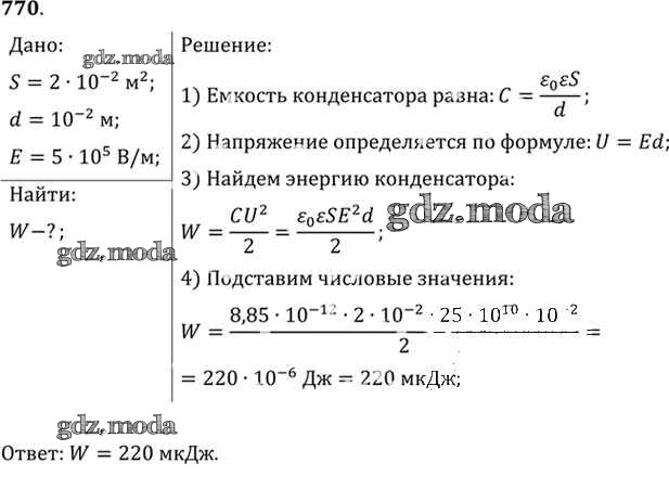 ОТВЕТ на задание № 770 Задачник по Физике 10-11 класс Рымкевич УМК
