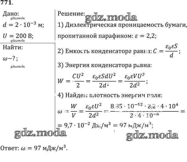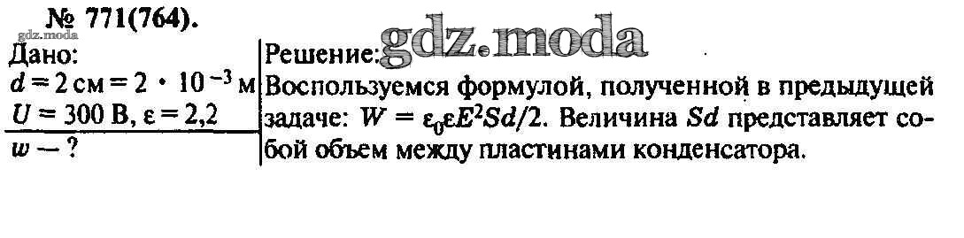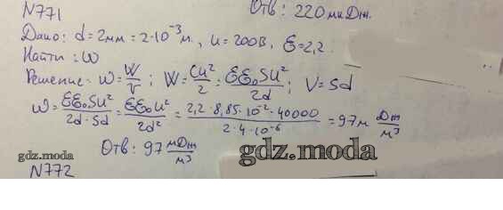 ОТВЕТ на задание № 771 Задачник по Физике 10-11 класс Рымкевич УМК