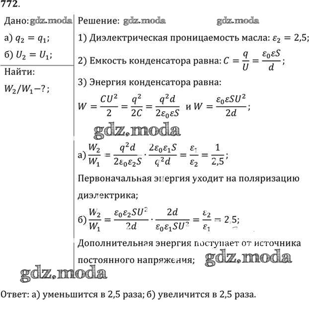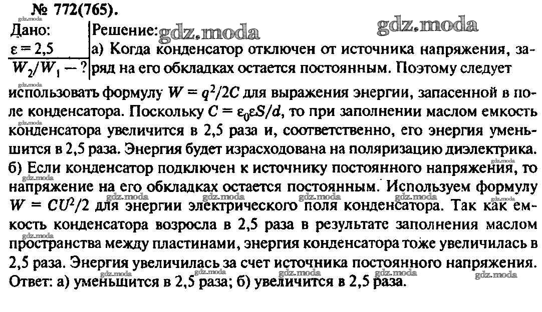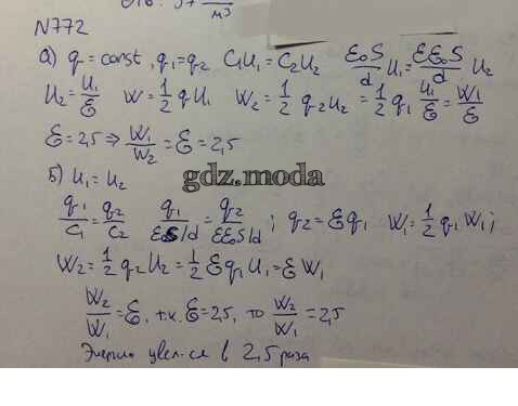 ОТВЕТ на задание № 772 Задачник по Физике 10-11 класс Рымкевич УМК