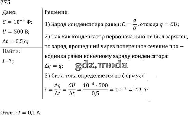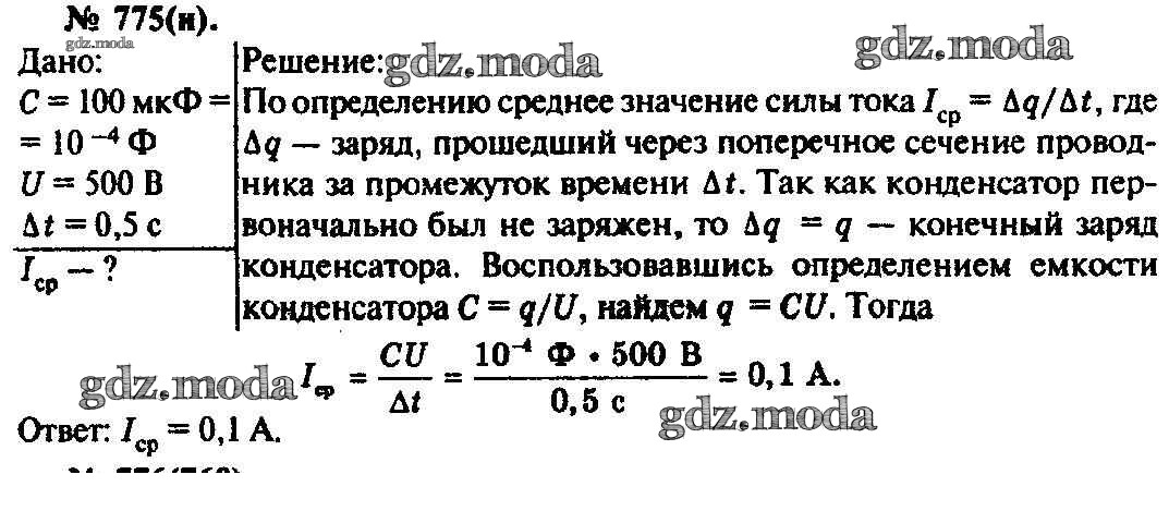 ОТВЕТ на задание № 775 Задачник по Физике 10-11 класс Рымкевич УМК