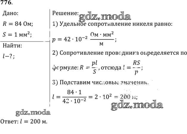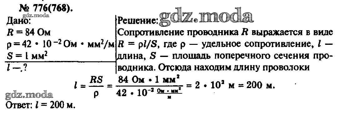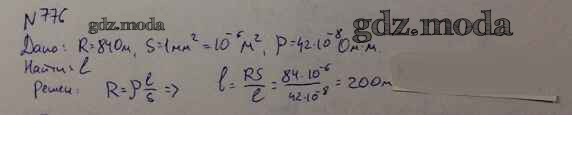 ОТВЕТ на задание № 776 Задачник по Физике 10-11 класс Рымкевич УМК