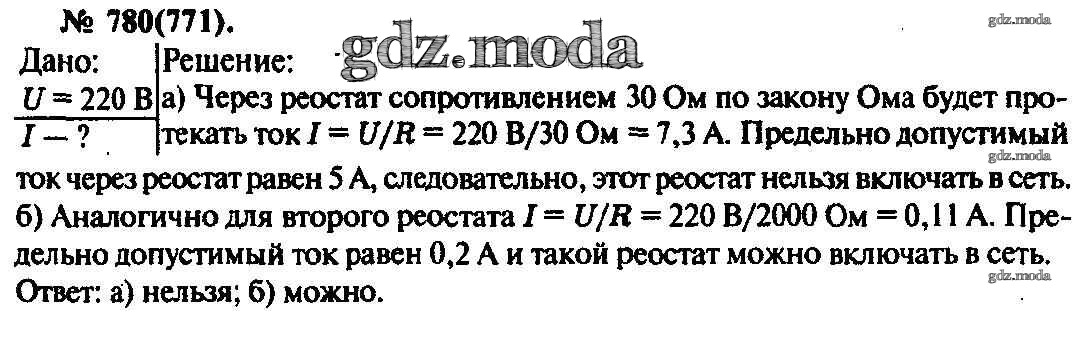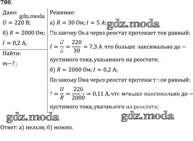 ОТВЕТ на задание № 780 Задачник по Физике 10-11 класс Рымкевич УМК