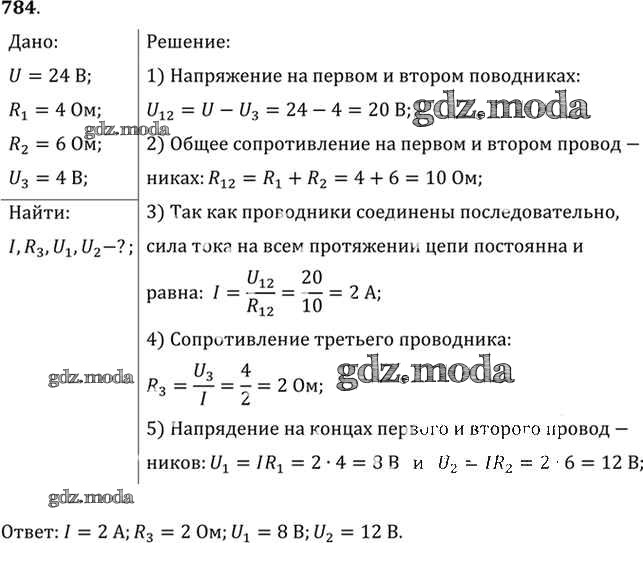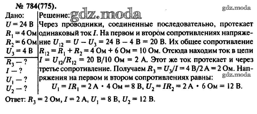 ОТВЕТ на задание № 784 Задачник по Физике 10-11 класс Рымкевич УМК