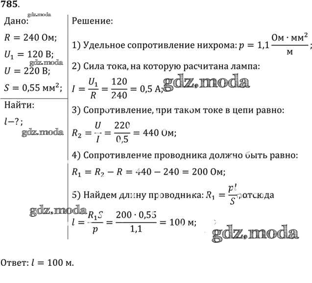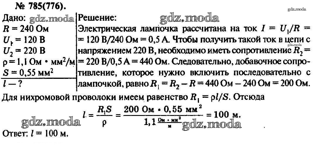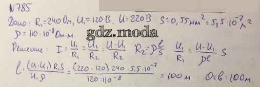 ОТВЕТ на задание № 785 Задачник по Физике 10-11 класс Рымкевич УМК