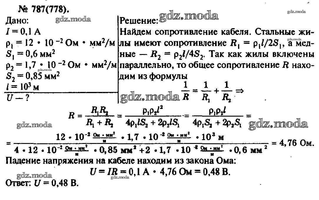 ОТВЕТ на задание № 787 Задачник по Физике 10-11 класс Рымкевич УМК