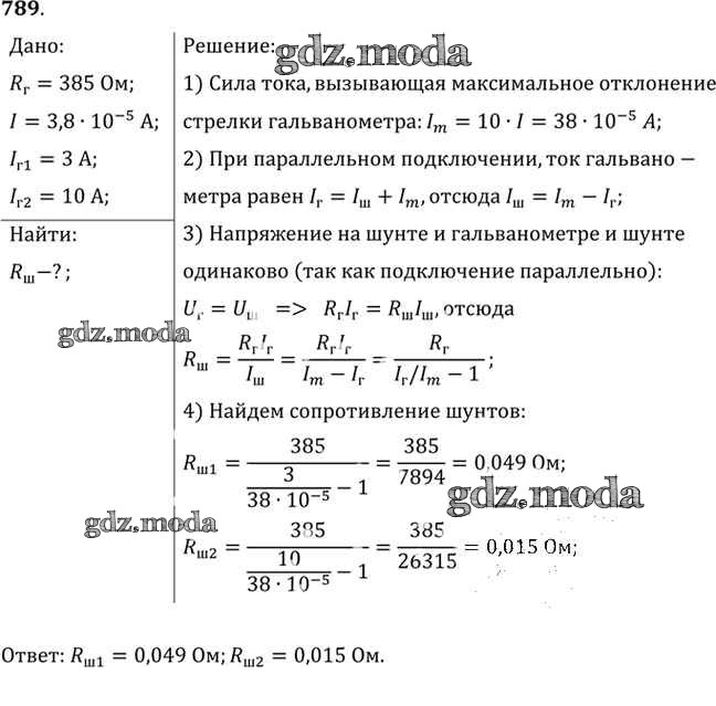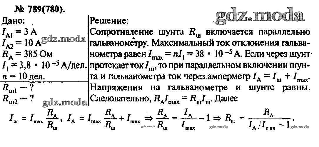 ОТВЕТ на задание № 789 Задачник по Физике 10-11 класс Рымкевич УМК