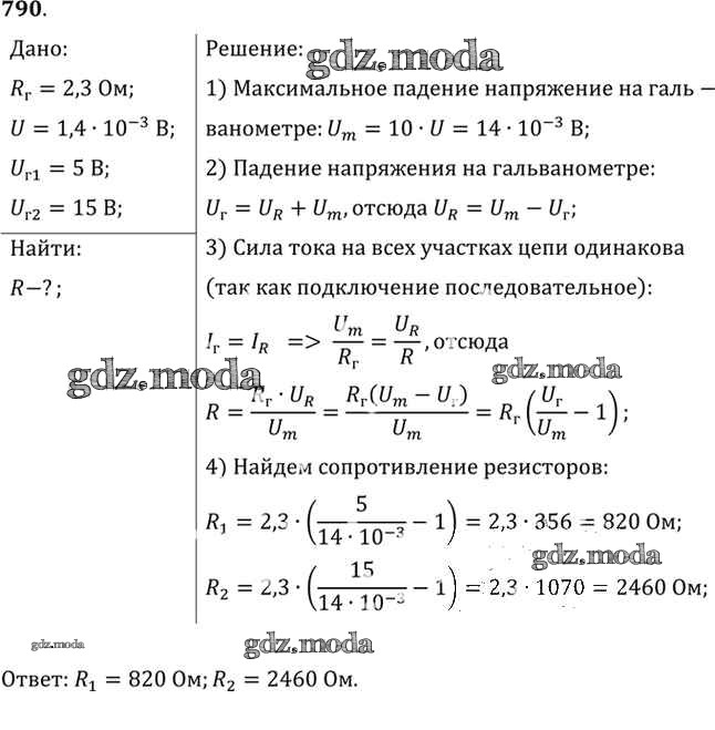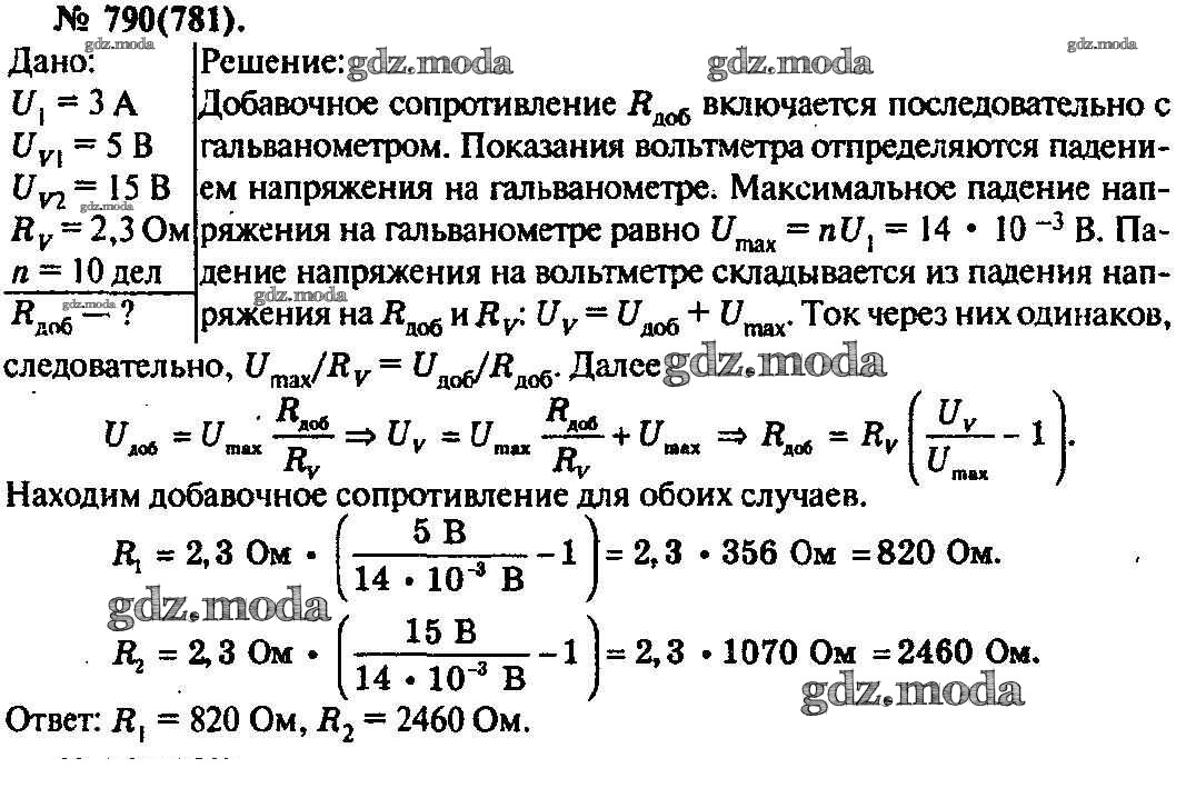 ОТВЕТ на задание № 790 Задачник по Физике 10-11 класс Рымкевич УМК