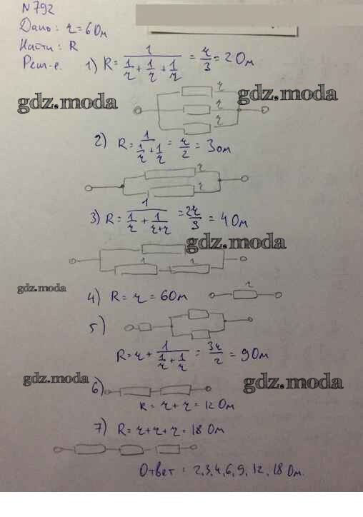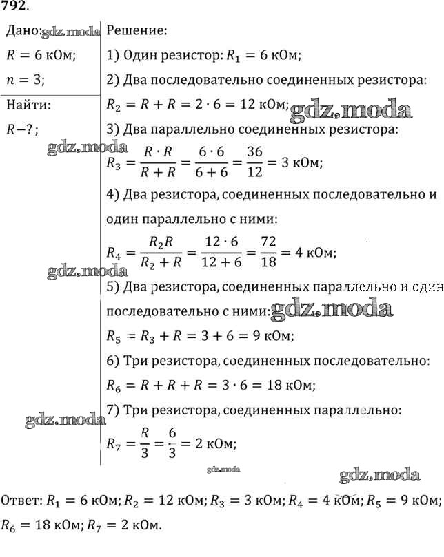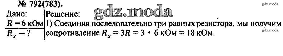 ОТВЕТ на задание № 792 Задачник по Физике 10-11 класс Рымкевич УМК