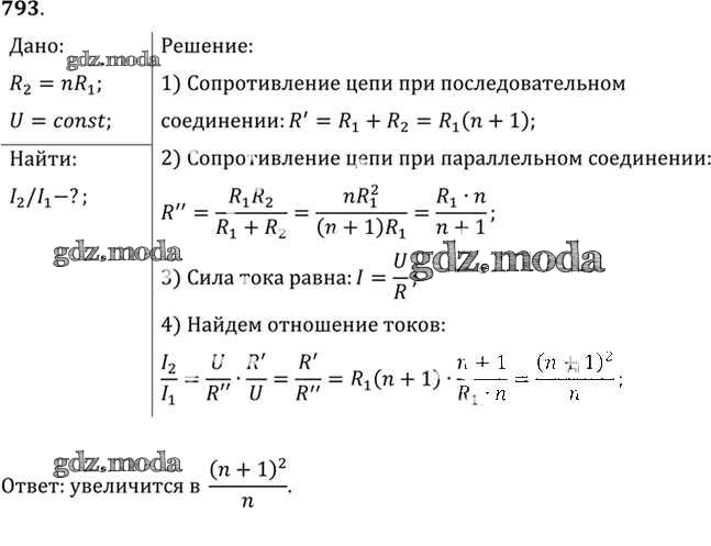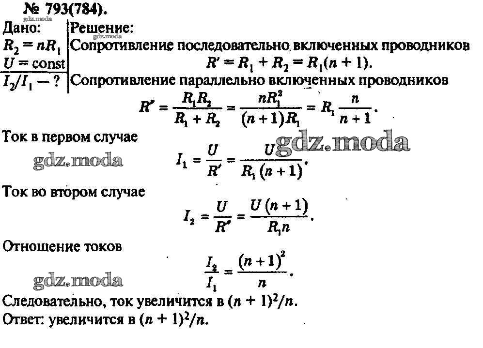 ОТВЕТ на задание № 793 Задачник по Физике 10-11 класс Рымкевич УМК