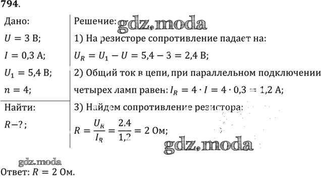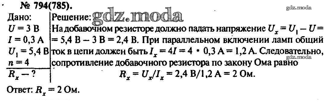 ОТВЕТ на задание № 794 Задачник по Физике 10-11 класс Рымкевич УМК