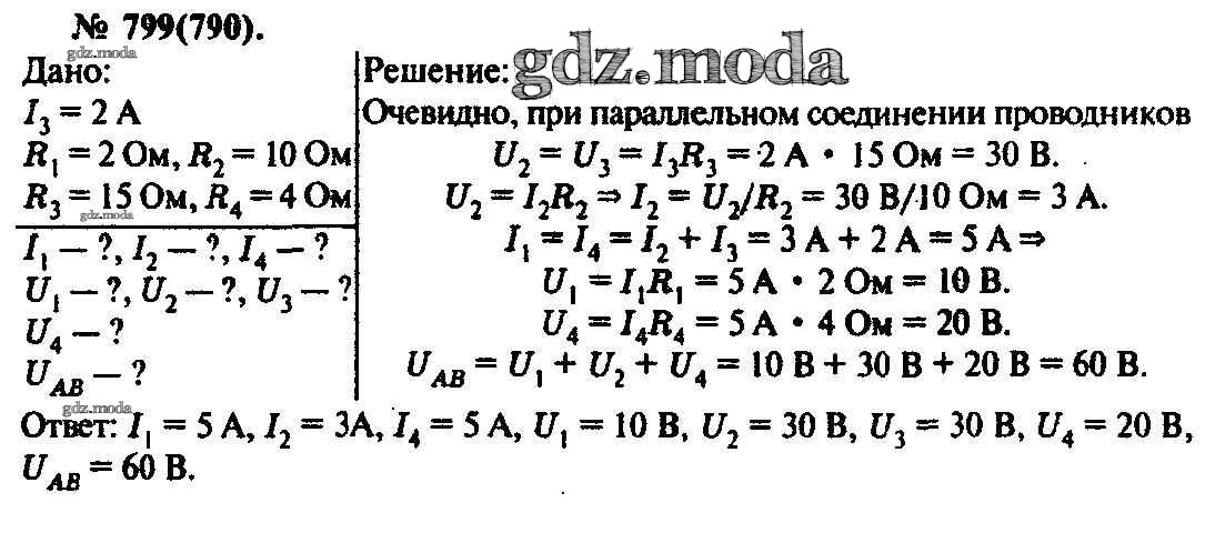 ОТВЕТ на задание № 799 Задачник по Физике 10-11 класс Рымкевич УМК